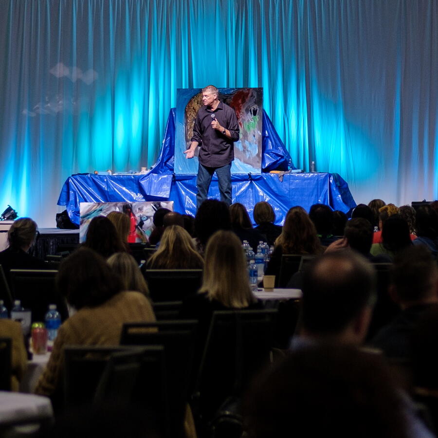 Organizational leaders hire Sam Glenn because his speeches bring renewed energy, perspective, and connection. As Sam paints, he delivers a message tailored to the audience, using valuable insights to help people reconnect with purpose, resilience, and optimism.