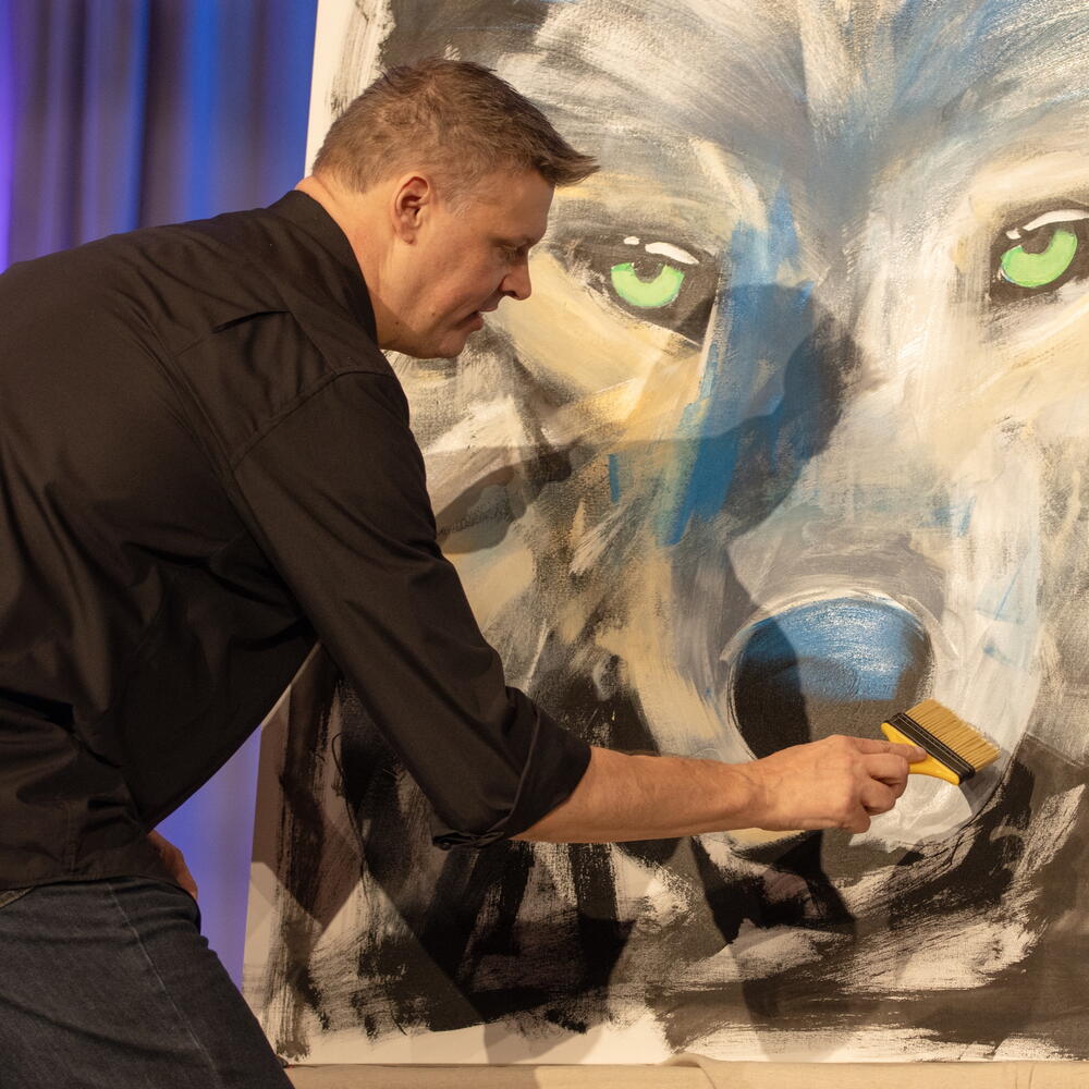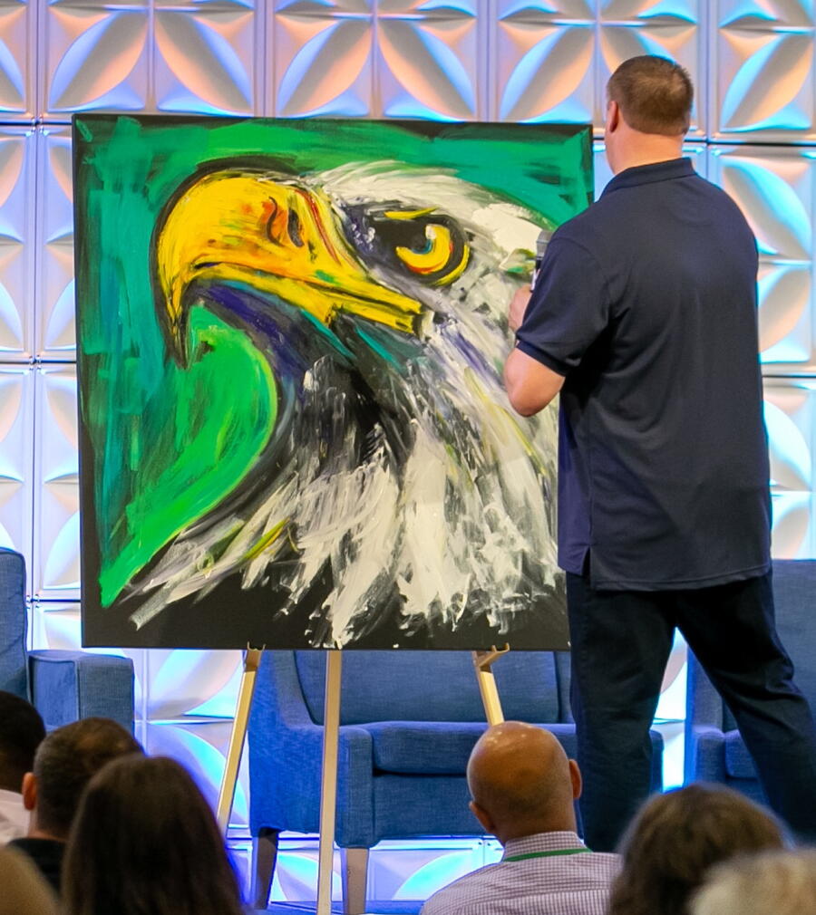 As an after dinner or luncheon speaker, Sam Glenn brings a genuine and uplifting energy that fills the room. His humor, stories, and live art keep audiences engaged, entertained, and uplifted from start to finish. Sam’s art blends beautifully with his message of optimism, resilience and positivity, creating a program that feels natural, heartfelt, and perfectly in tune with the flow of the evening or event type of function.