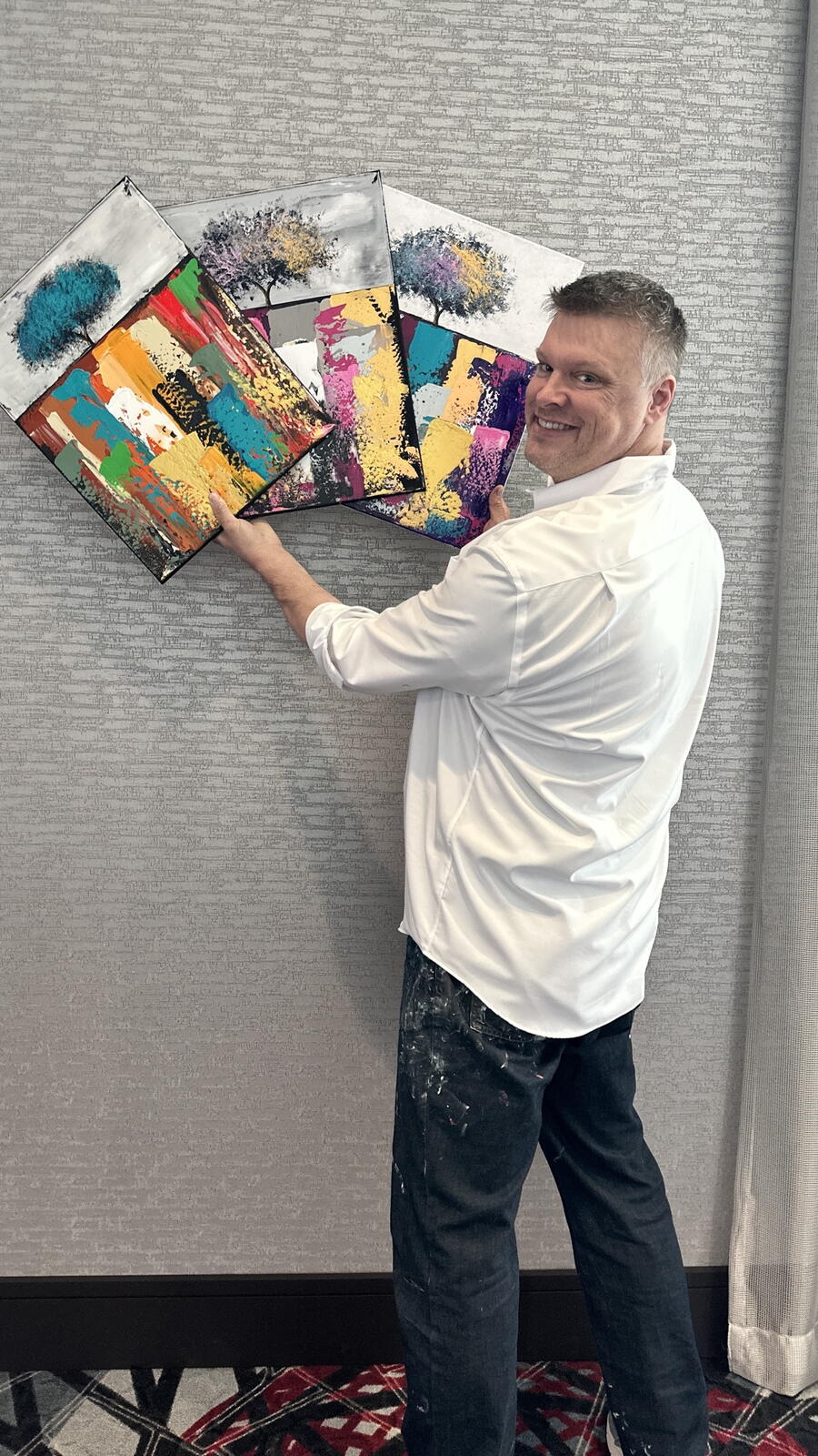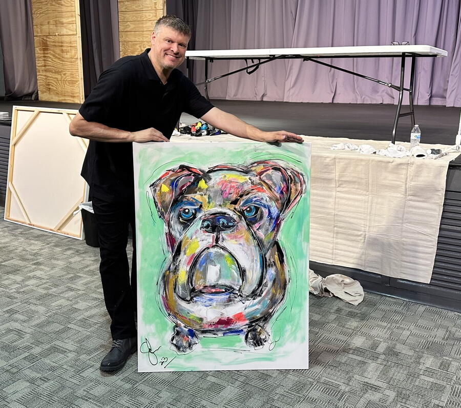 Sam Glenn combines his keynote message with live painting, creating an experience that audiences find relevant, inspirational and engaging. As Sam paints, he shares stories, humor, and lessons about attitude, resilience, kindness, leadership and more. The painting takes shape as the message unfolds, which keeps everyone entertained, and fully engaged.