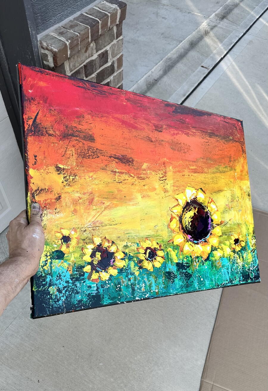 1: Sam doesn’t speed paint, toss paint or get it all over. Sam paints similar to Bob Ross. Everyone is going to feel good! Sam delivers an incredible speech while he paints. There is no rush.